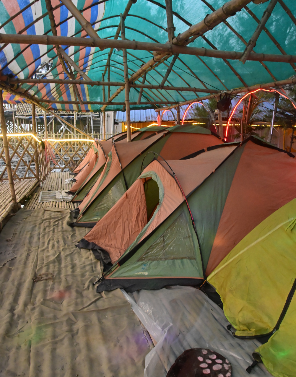 Enjoy a unique beachside tent stay with comfort and adventure. Our cozy tents with ambient lighting offer a peaceful stay close to nature—perfect for a relaxing weekend getaway by the sea.